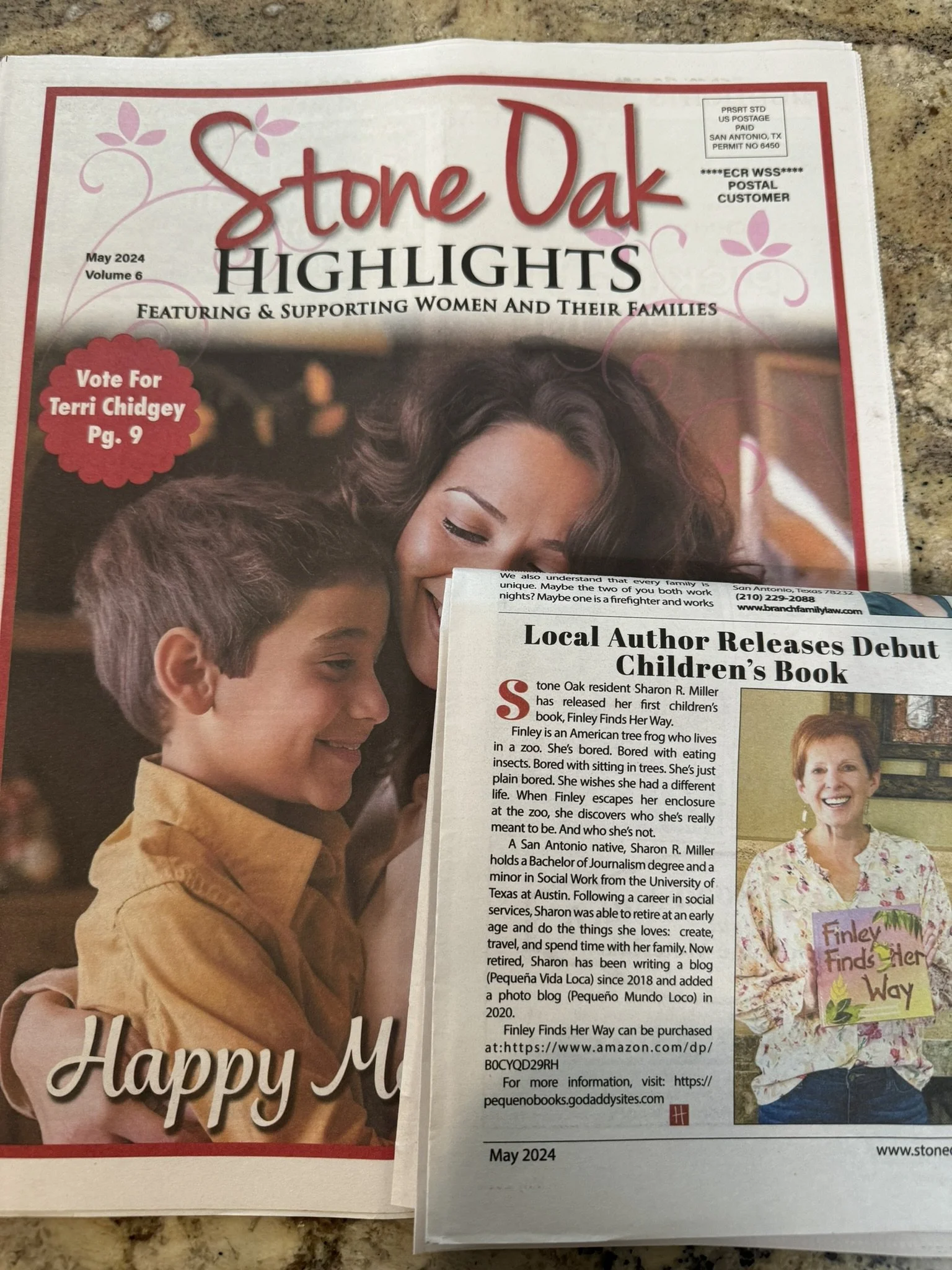 The May 2024 edition of Stone Oak Highlights featured an article on the release of Sharon’s debut children’s book “Finley Finds Her Way”.